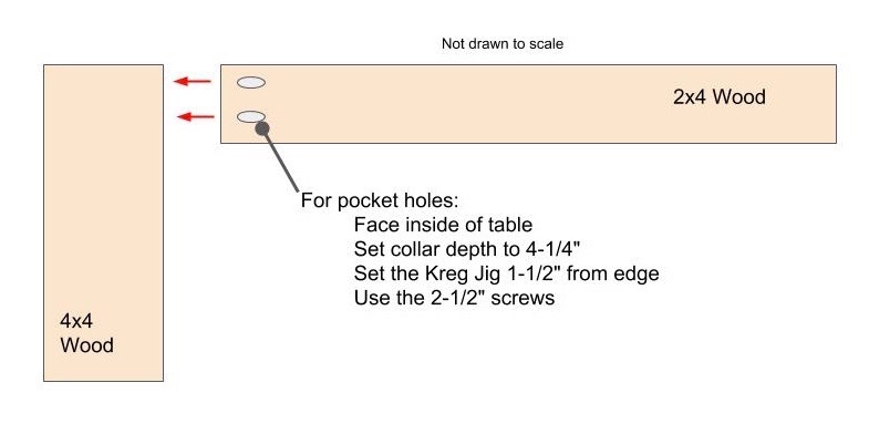 Note that nominal sizes like 2x4 are not actual sizes. So a 2x4 is not 2 in. x 4 in. but instead 1-1/2 in. x 3-1/2 in. and this can be confusing for the beginner and easy to forget as you're working on your table.