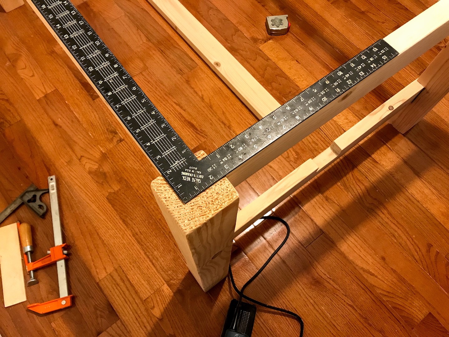 The frame is assembled primarily using pocket screws. Be sure to check that everything is square each step of the way.