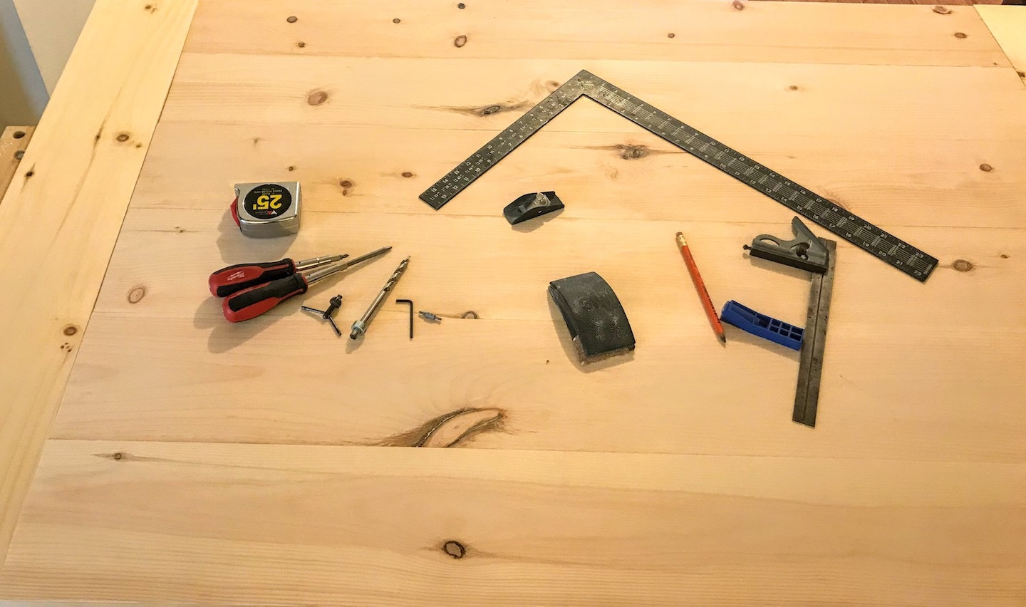 Gather the following: Power drill, Kreg Jig, 2" Pocket screws, Wood glue.