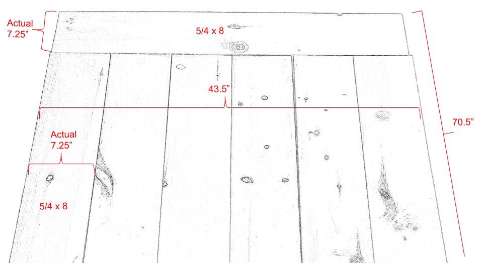Gather your 5/4 x 8 pieces and put them together on a flat surface. Ensure that all pieces are straight and fit together well. Sanding will later take care of any minor imperfections, but replace any pieces that do not fit well.